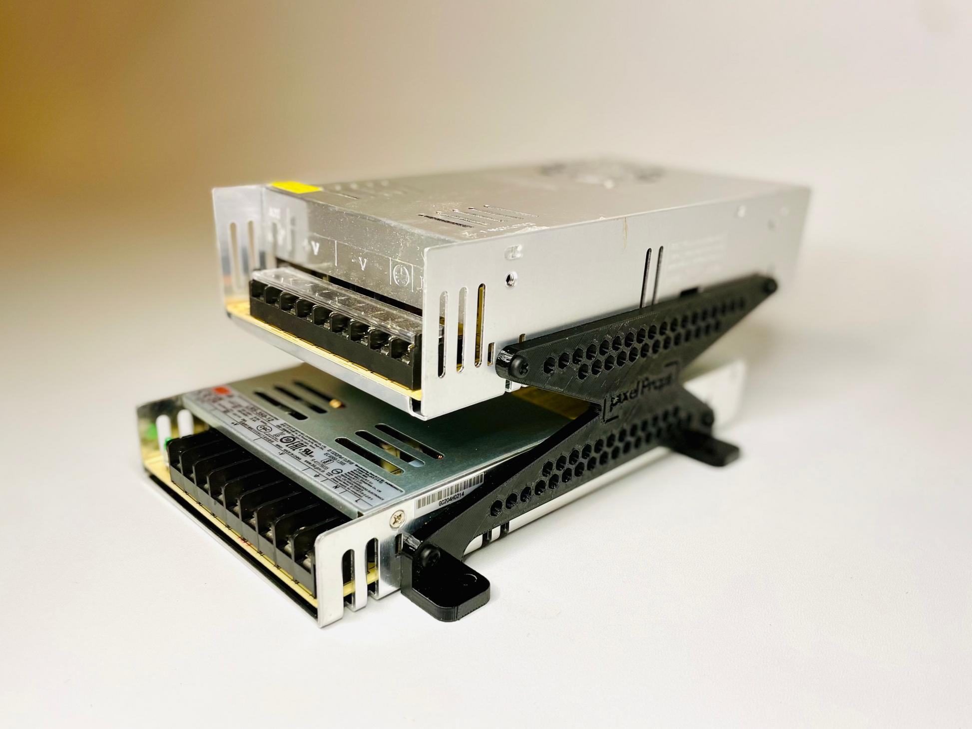 Upgrade your power supply setup with the Meanwell LS-350 Dual Mount. 3D printed in high-quality black PETG for exceptional strength and resilience. This pair of custom-designed mount securely holds two Meanwell LS-350 power supplies, providing a stable and organized solution for your electrical needs.